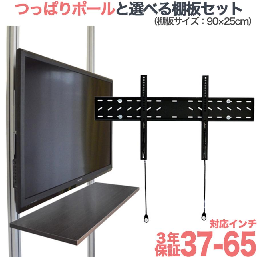 賃貸でもOK!【37〜65型対応】テレビ壁掛け金具(角度固定タイプ)・エアーポール・2本用棚板90x25cmセット AP-141-SH9025 [ap-141-sh9025]