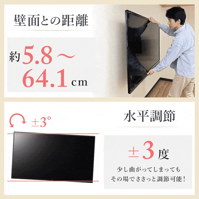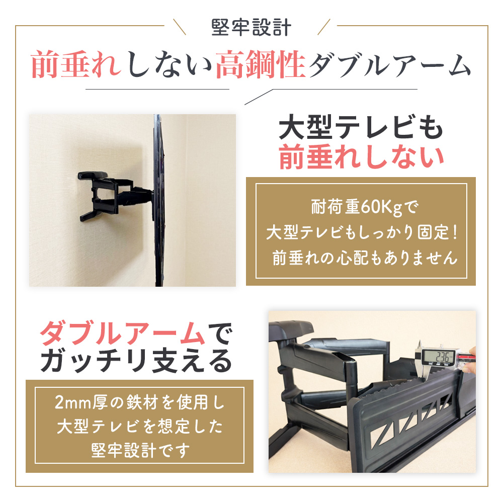 | 耐荷重 | 60kgまでのテレビなら取付け可能 |