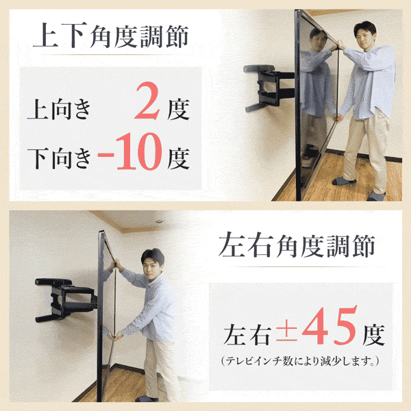 - > 【46〜90型対応】大型テレビ対応 スタイリッシュ壁掛け金具 上下左右角度調節ダブルアーム - PRM-HILEV9