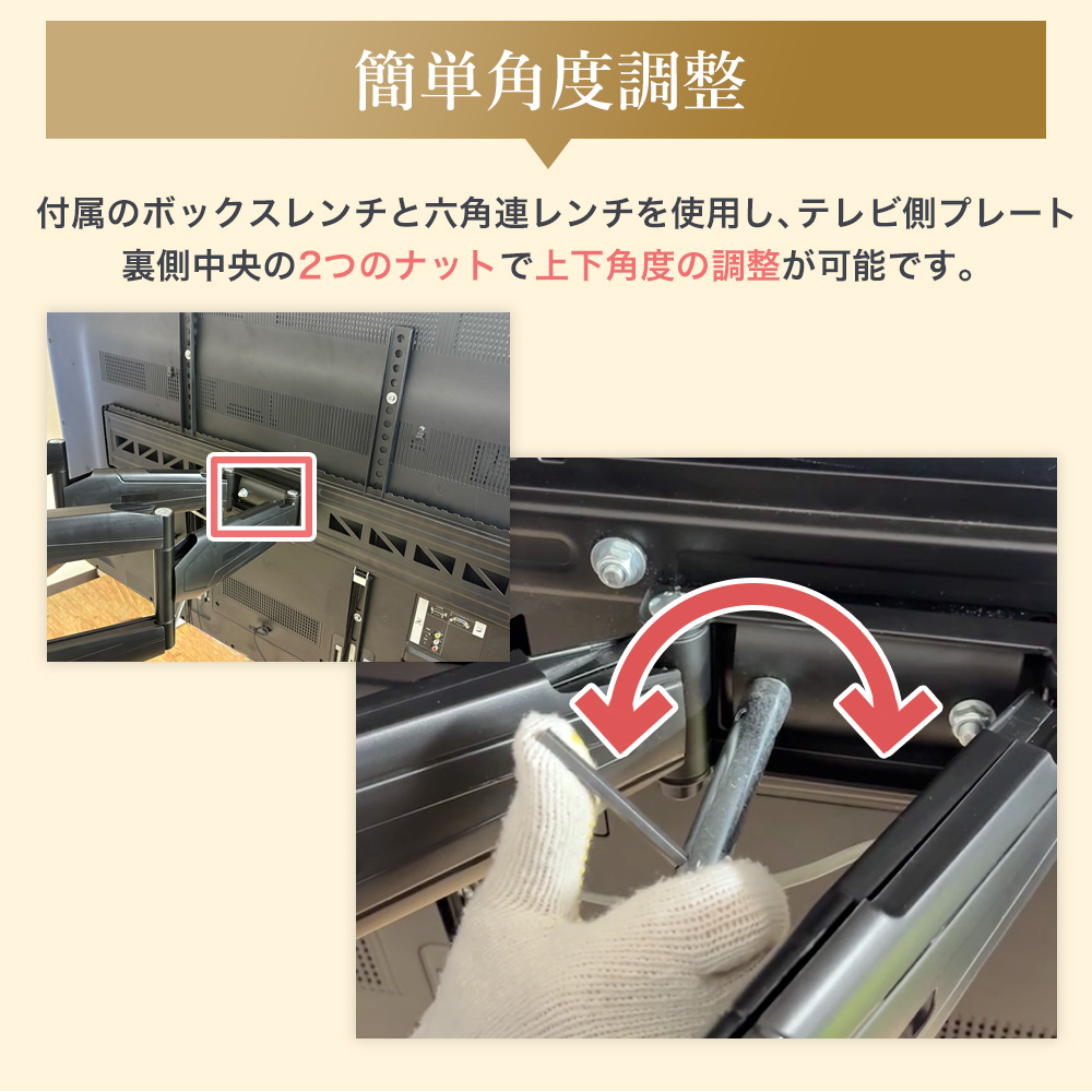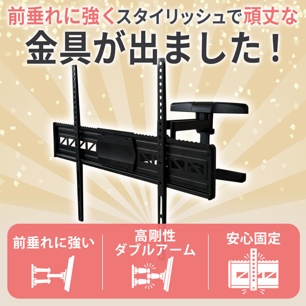 | 付属品 | 金具本体・基本的な取付けネジ類(壁側・テレビ側)・日本語取付け説明書 |